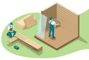 Attention : nos assembleurs NE PEUVENT PAS installer quoi que ce soit qui doit être connecté à l’électricité, au gaz, à la plomberie ou fixé sur les toits. De plus, nous ne sommes pas en mesure de fixer des éléments de manière permanente au mur ou au sol, ni d’insérer des éléments en béton dans le sol.